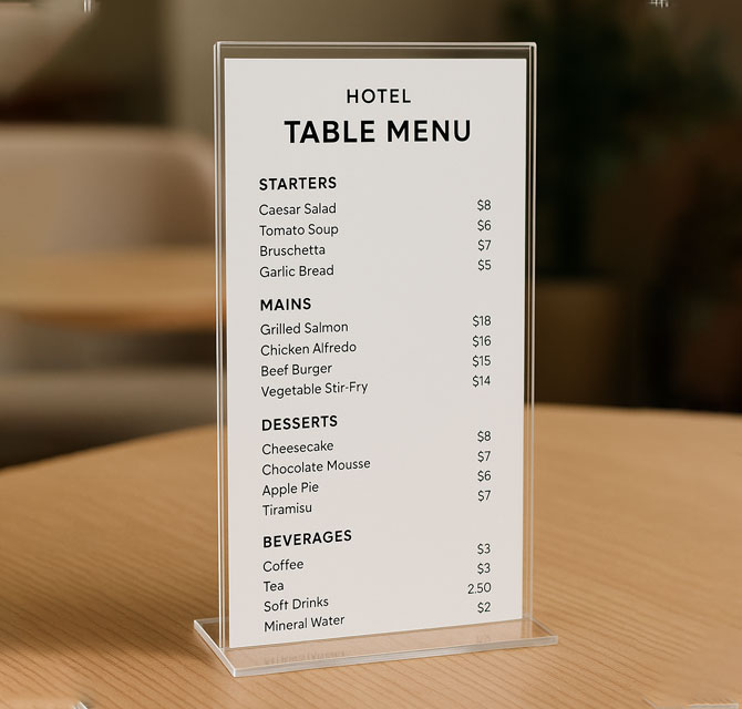 - Product Sub Category : Hotel Menu Printing